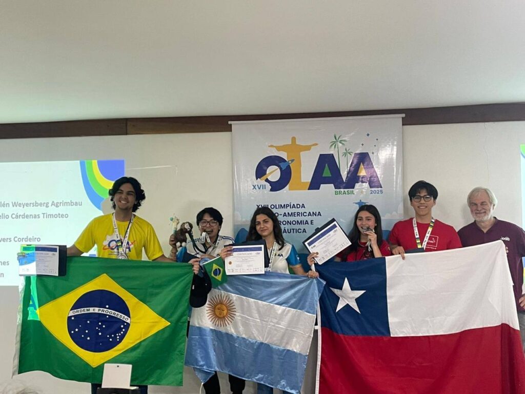 Con gran alegría felicitamos a Rocío por obtener medalla de plata, destacando entre representantes de 15 países de toda Latinoamérica. Este encuentro concluyó con dos medallas de plata y dos menciones honrosas para Chile, siendo una experiencia inolvidable que le permitió compartir con jóvenes de distintas culturas y vivir un ambiente de colaboración y respeto en torno a la astronomía.