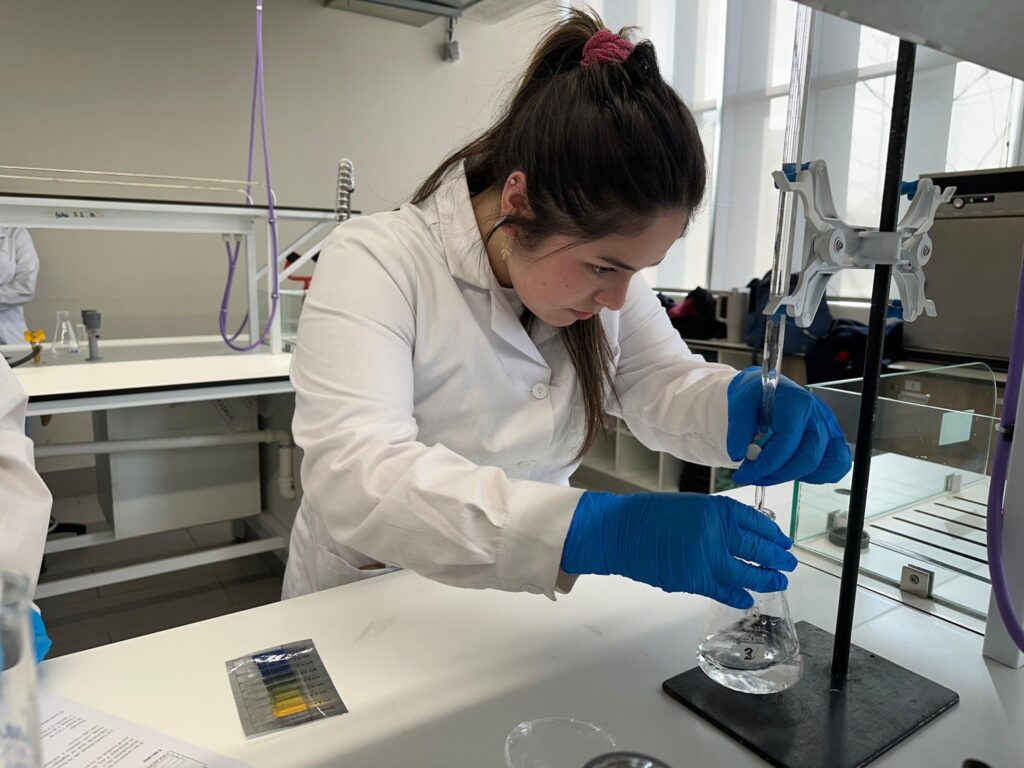 Durante la visita, participaron en una charla informativa sobre la nueva carrera del área de Química, recorrieron las instalaciones del instituto y finalizaron con una experiencia práctica en los laboratorios de docencia. En esta actividad trabajaron en torno al tema ácido-base, guiados por profesores y ayudantes de la universidad.