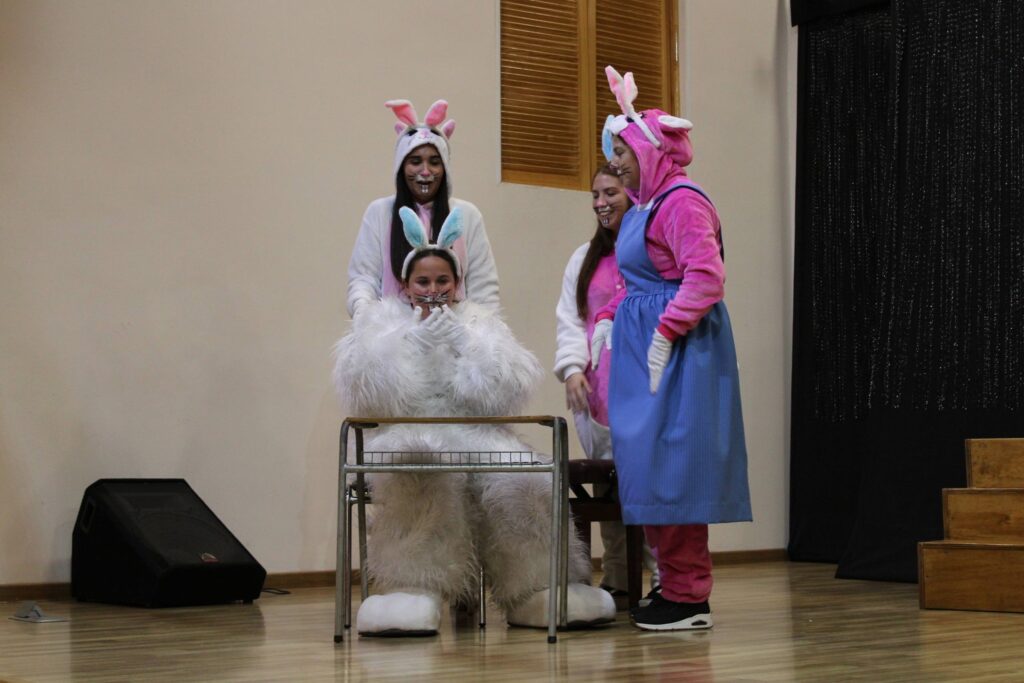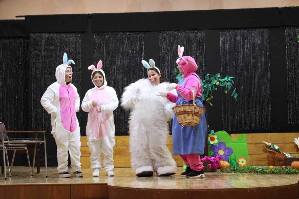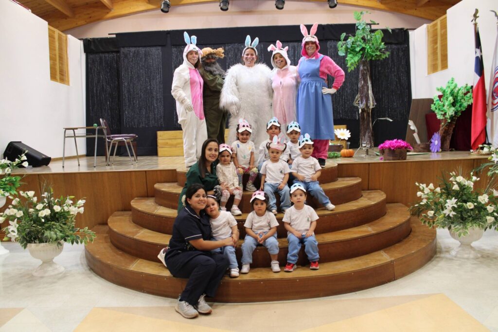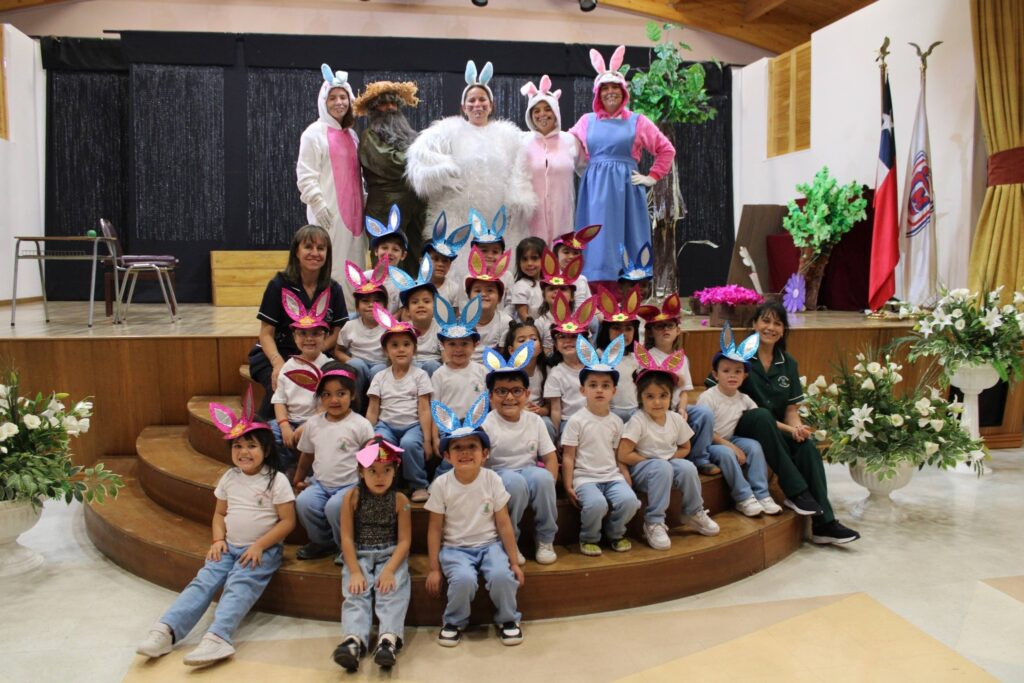 Durante la tarde, la celebración continuó con el mismo espíritu. El Conejo de Pascua regresó para reencontrarse con los niños y niñas de la jornada vespertina, quienes también participaron de la obra teatral junto a las tías, disfrutando de un ambiente alegre y participativo. La jornada culminó con la tradicional búsqueda de huevitos, cerrando la celebración con emoción, movimiento y lindos recuerdos para todos.
