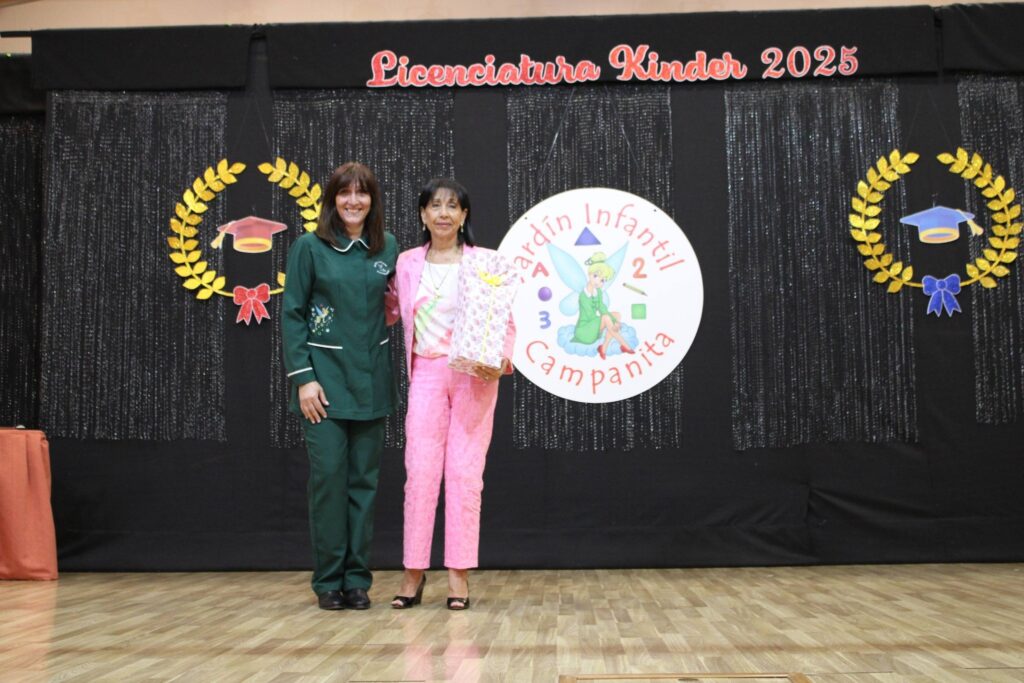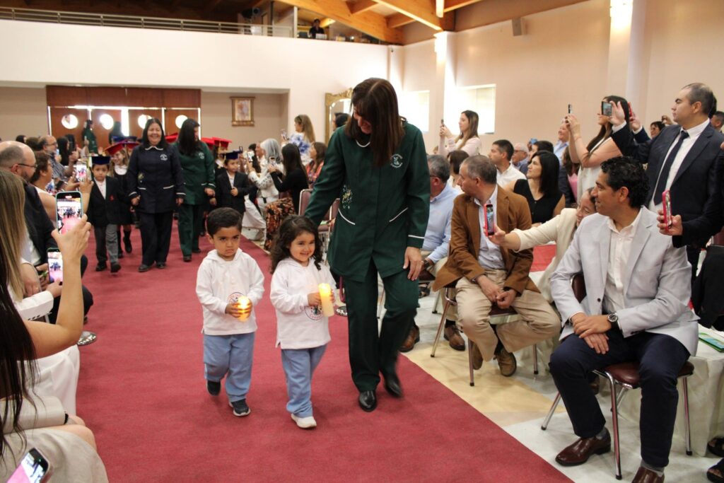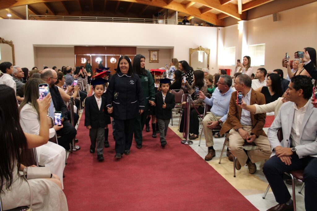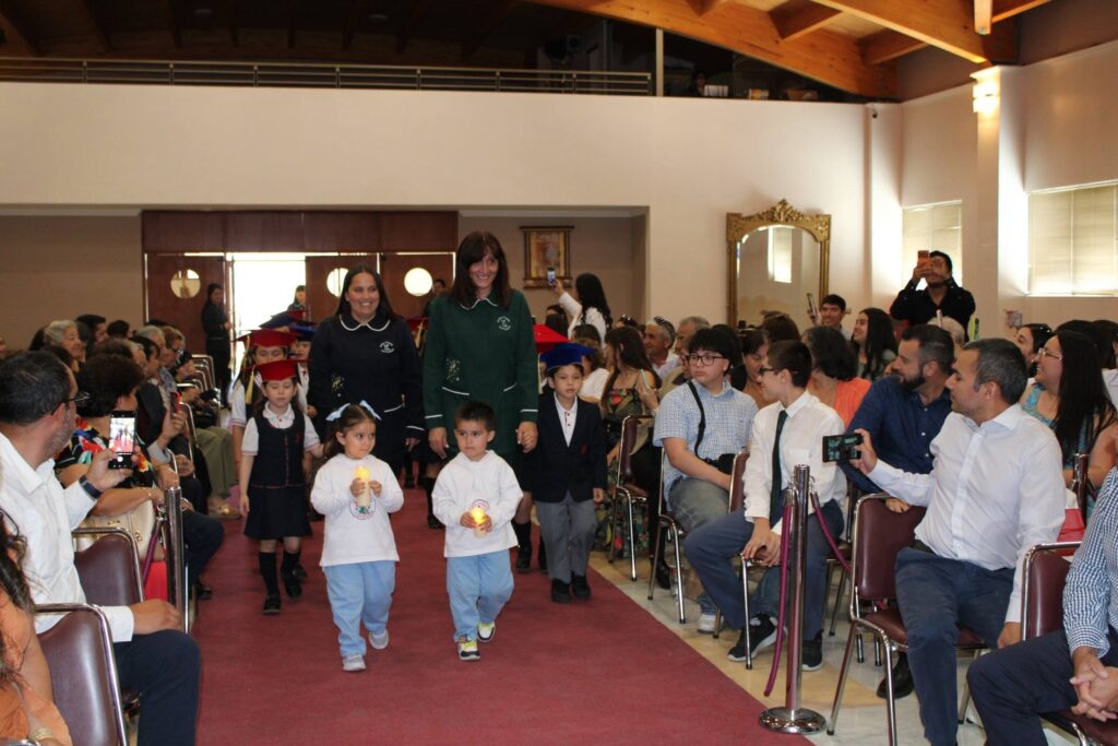 La jornada concluyó con la ceremonia de egreso de Kinder C, en un ambiente cargado de emoción y significado. Apoderados y familias fueron parte de este cierre de etapa, que puso fin a cuatro años de vivencias formativas y experiencias clave para el desarrollo integral de los niños y niñas 🌟🌈. En esta instancia, se destacó especialmente el trabajo realizado por la educadora María Edilia Gutiérrez y la asistente Carolina Águila, quienes guiaron al curso con compromiso, cercanía y dedicación durante su último año en el nivel parvulario 💙👩🏫.
