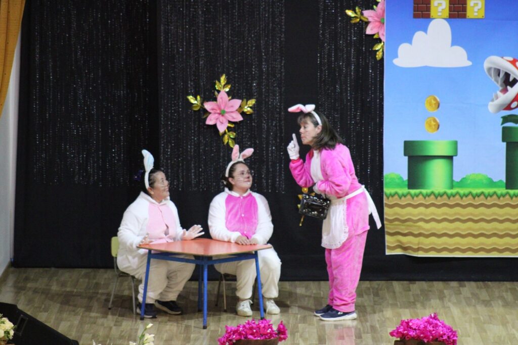 Las educadoras dieron inicio a las actividades con el encantador cuento “Pedrito, el conejo curioso”, que cautivó a todos los presentes. Luego, los apoderados sorprendieron con sus presentaciones preparadas con dedicación y cariño para celebrar el Día del Niño, llenando de risas y aplausos cada momento.