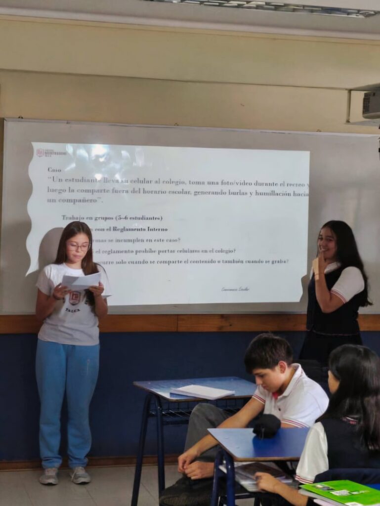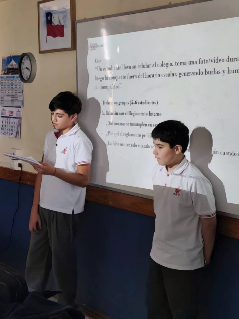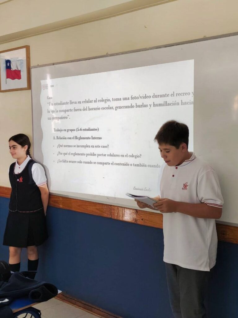 Durante esta semana, en el espacio de orientación, los cursos de Enseñanza Básica y Media participaron en diversas actividades grupales diseñadas según cada nivel, centradas en la reflexión sobre el ciberacoso y el uso responsable de las redes sociales.